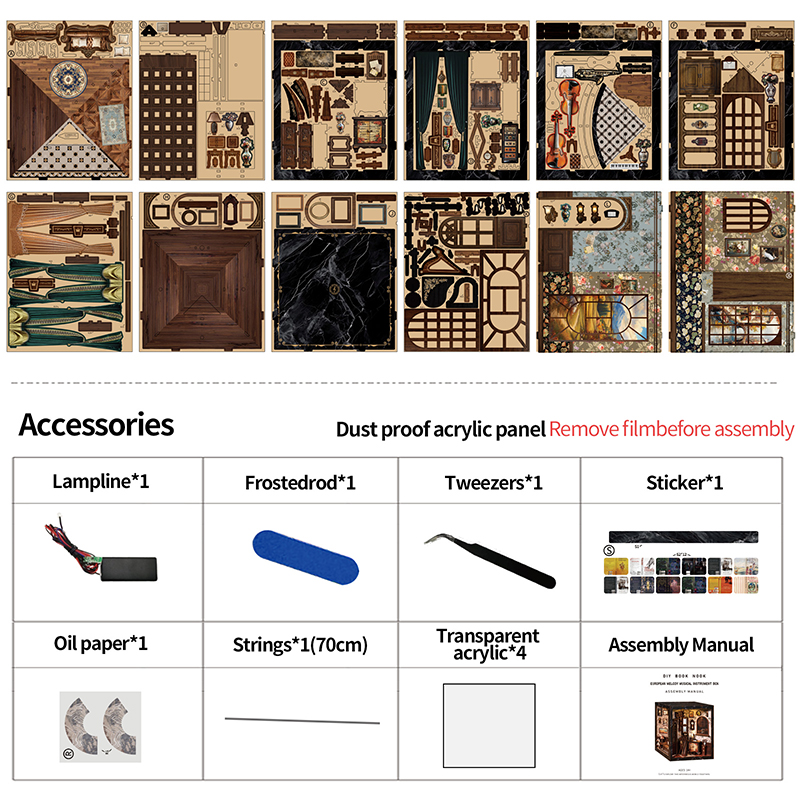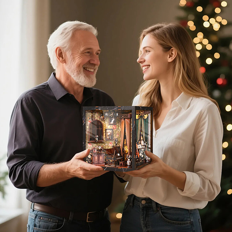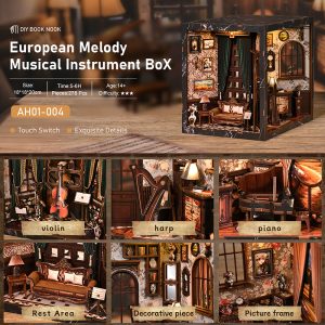 AH01-004·Book Nook Kit – DIY Miniature House Kit for Adults and Teens, Dollhouse Boo knook Tiny House Model Build Bookshelf Decor, Gifts for Family, Friends